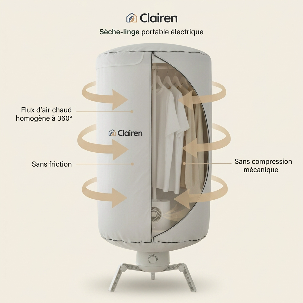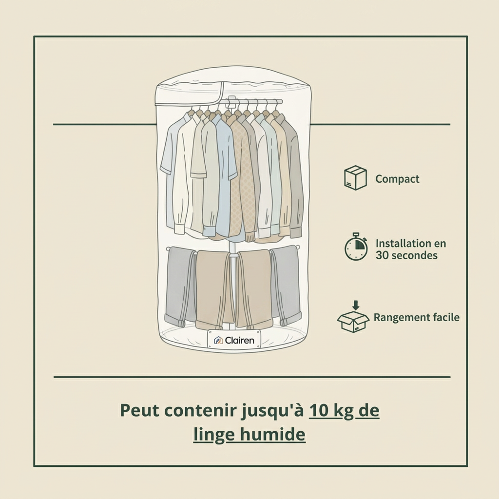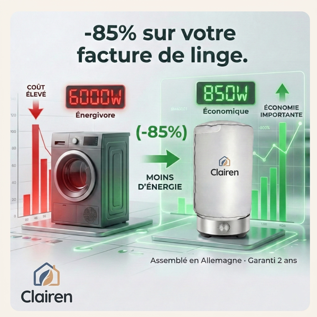 Étendoir qui traîne au milieu du salon, tancarville surchargé, vêtements encore humides après 2 jours… Et quand on passe au sèche-linge, les pulls rétrécissent, les fibres s'abîment et la facture grimpe. Il y a forcément mieux.