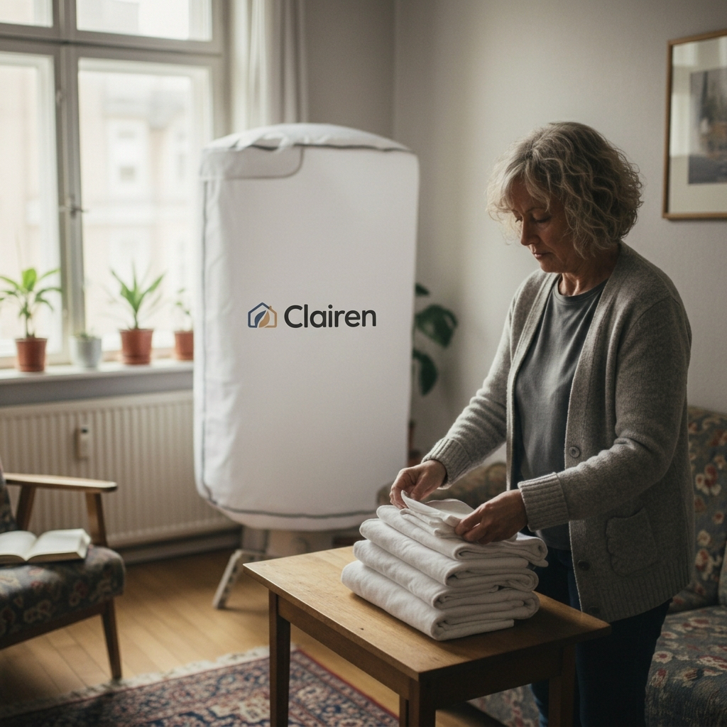 Contrairement à un étendoir ou un tancarville qui reste planté dans votre salon, Airdy se replie en un instant et disparaît dans un placard. Idéal pour les logements où chaque mètre carré compte.