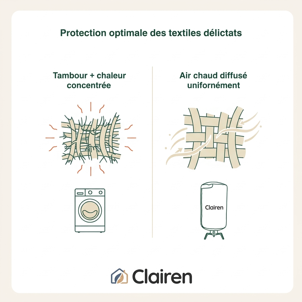 Oui, c'est justement l'un des atouts de Airdry. Sans tambour ni frottement, vos textiles délicats (soie, laine, lingerie) sont séchés en douceur, suspendus naturellement.