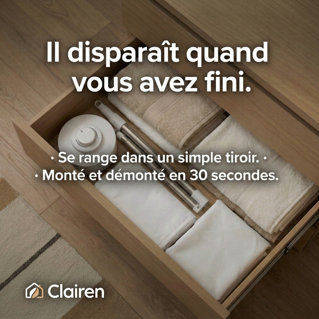 Absolument. Aidry est compact, extensible et se range facilement. Il s'installe en 30 secondes dans n'importe quel espace : salon, salle de bain, buanderie ou studio.